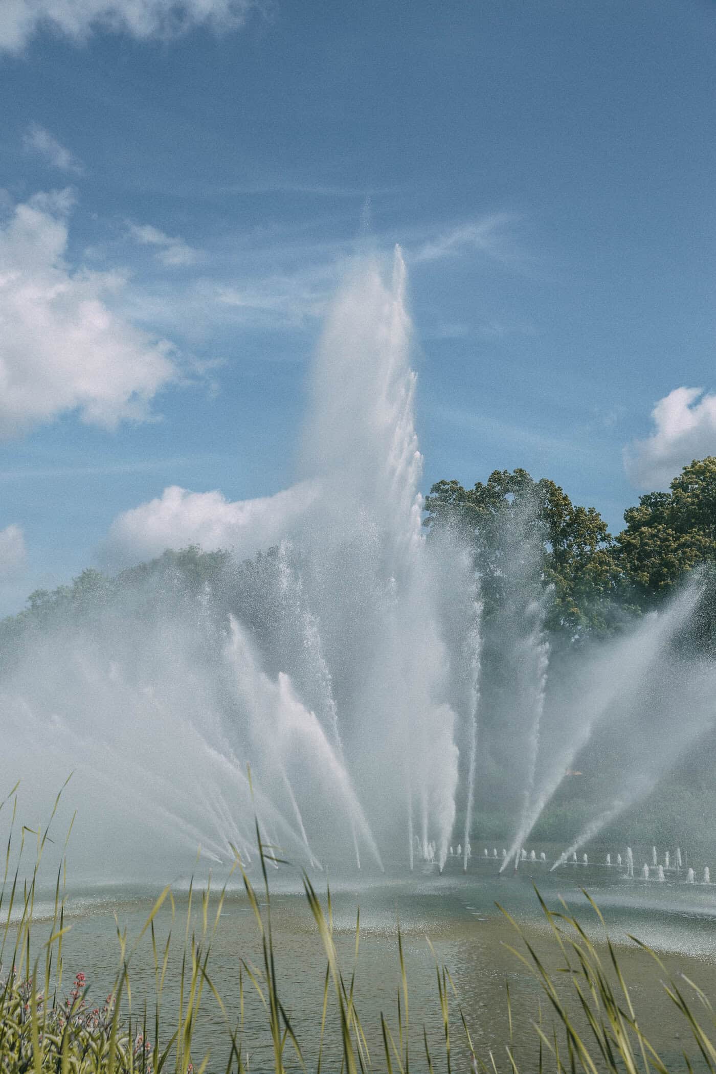 Ich schnappe mir einen Platz auf der Wiese, lasse mir die letzten Sonnenstrahlen ins Gesicht scheinen und warte gespannt. Mehrmals täglich (14, 16, 18 Uhr) steigen die Fontänen im Takt der Musik in die Höhe – und wenn du im Sommer abends um 21 Uhr vorbeischaust, bekommst du sogar eine farbenprächtige Lichtshow obendrauf. Magisch, aber ganz ohne Kitsch.