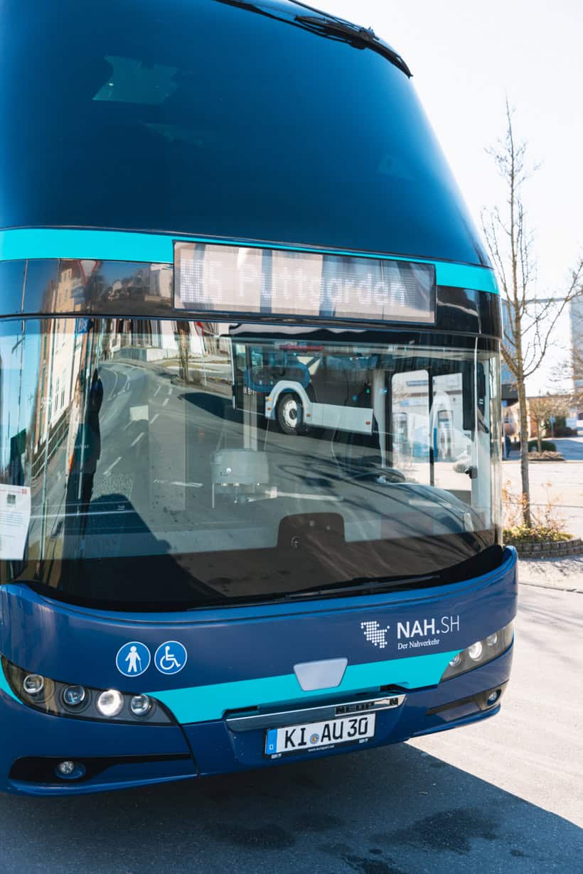 Überraschung: Dieses Mal reisen wir nicht auf Gleisen, sondern auf der Straße zu unserem Ausflugsziel. Wegen des Um- und Neubaus der Bahnverbindung für die feste Fehmarnbeltquerung verkehren nördlich von Neustadt in den kommenden Jahren statt Zügen moderne Doppelstockbusse, die Linie X85. Diese komfortablen Busse bieten eine stündliche Verbindung zwischen dem Lübecker Hauptbahnhof und dem Oldenburger Bahnhof. Fahrplanauskünfte und Tickets findest du sowohl hier als auch in der App DB Navigator.